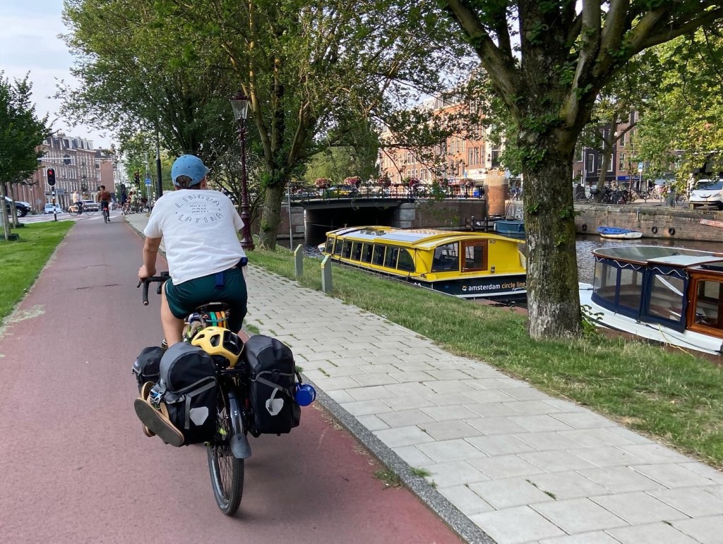 We had a 10 hour flight from MSP to Keflavik to Amsterdam and we arrived in Amsterdam on August 5. We put our bikes together at baggage claim with no issues –surprisingly— and then we biked out of the airport without having to go through immigration or anything.
