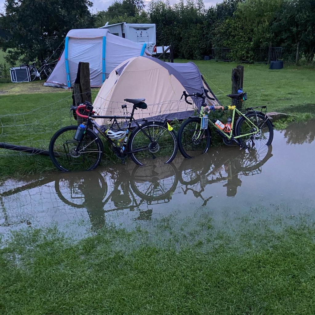 We spent the morning at camp and then around 11am we went into the town of Werkhoven to buy a gas can for our stove, which we did not end up finding so we ended up just buying a lighter and some breakfast food. We went to Odijk after that to go to an ATM but on the way there we saw dark clouds and even though it wasn’t supposed to rain it started DOWNPOURING it was crazy, we started sprinting into the town center and rode our bikes under an awning for a restaurant and by the time we had gotten there we were already soaked.