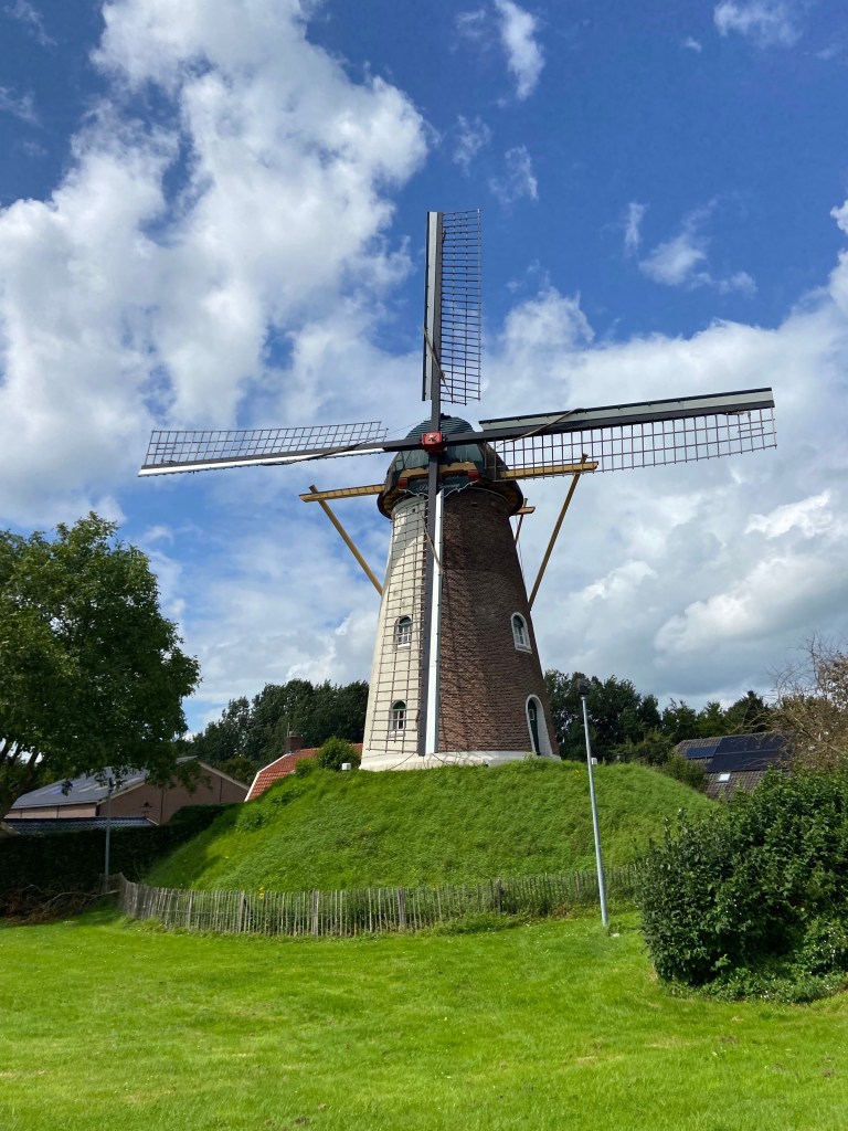 We stopped at a cafe for a coffee around two at a town we couldn’t find the name to and we made friends with the waitress who served us two lattes, two paninis, a beer and a coffee for 16 euros. I learned the name for panini in Dutch there too – Tostee.