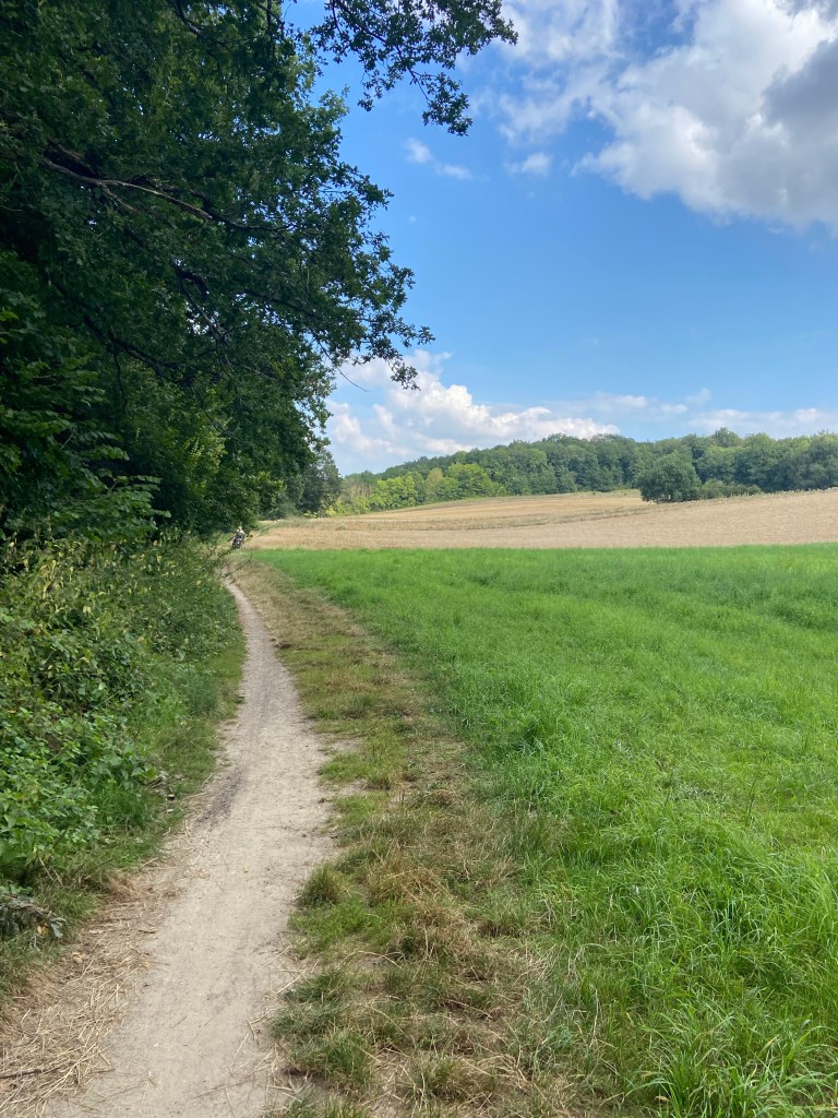 We rode on this dirt path through the countryside and listened to music on my speaker for the last 20km between the suburbs of Paris and the campsite.