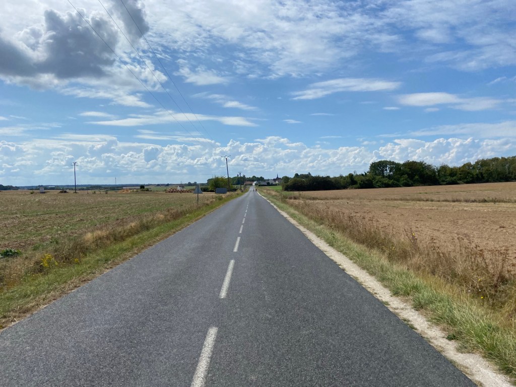 So today I did an easy ride through the flat French country for 80 km. I stopped in Selommes Fr for my first break and got a tomato and a baguette from a bakery. I met a guy who flew his own plane into town to do a 20 km bike trip to a meeting. He was carrying a massive tank of water. Funny dude.