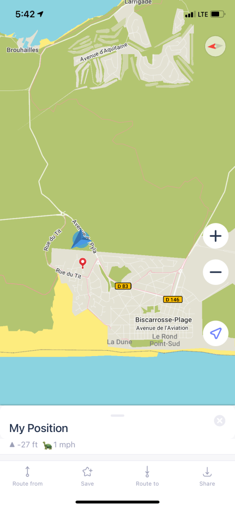 Another short day. We went 13 MI to the town of Biscarrosse Plage. We did a short day because it was our last day on the coast and we wanted to stay in a town.