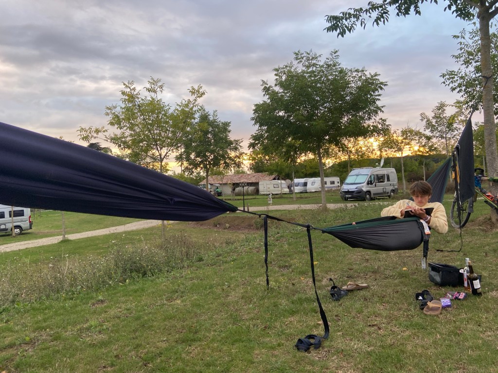 At around noon I was sitting on the ground at our campsite which was at the other end of the campground as the office and I notice the camp host wheeling a picnic table around on a dollie. About 5 minutes later he brings it up to me and sets it down and said “I thought you might want this since you don’t have chairs” then he proceeded to offer us a ride to Nîmes FR in the morning since he was going there to buy a car. Nîmes was about 500 km away in the direction we were going.
