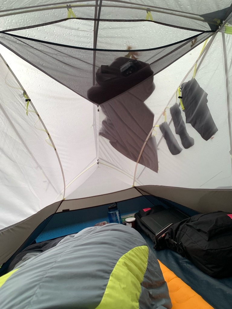 I woke up in the tent and looked at the weather and it was forecasted to rain off and on all day. So we decided to just take a day to hide from the rain in our tents.