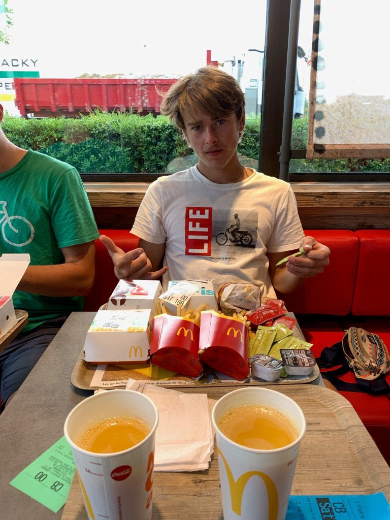 We biked to a McDonald’s for the free wifi and a French Big Mac and we picked out where we wanted to camp. We found a great campground amazing amenities, great looking camp sites, farm animals, I could keep naming stuff. But there were two issues it was €60 a night, and it was a nudist campground.