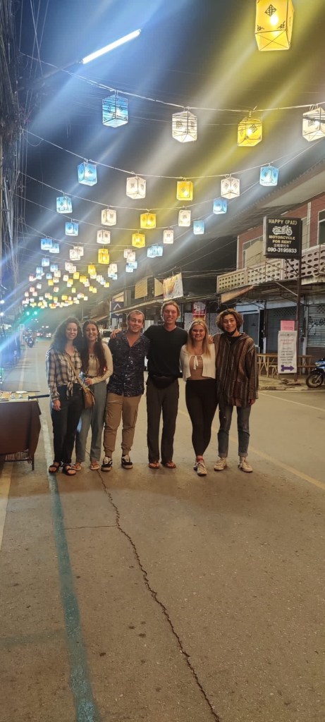 I’ve been in Pai for a week now and I love this town. It’s a little town but there’s still so much to do. I’ve been hanging out with two Israeli girls, named Avital and Shai, a couple from Canada, named Kaili and Tai, and a German man named Merlin and we’ve gone all over the place. Hot springs, Chinese village, the huge Buddha in the mountains, the canyon, the night market, seen elephants, gone tubing. The list goes on. It’s also cold outside here which is so nice after spending so long in southern Thailand where it’s heat all day and night. Pai is situated in a valley with mountains all around and a river running through it so it has amazing scenery. You can find all sorts of people here too so it’s easy to find a good group to fit into while hanging out here.
