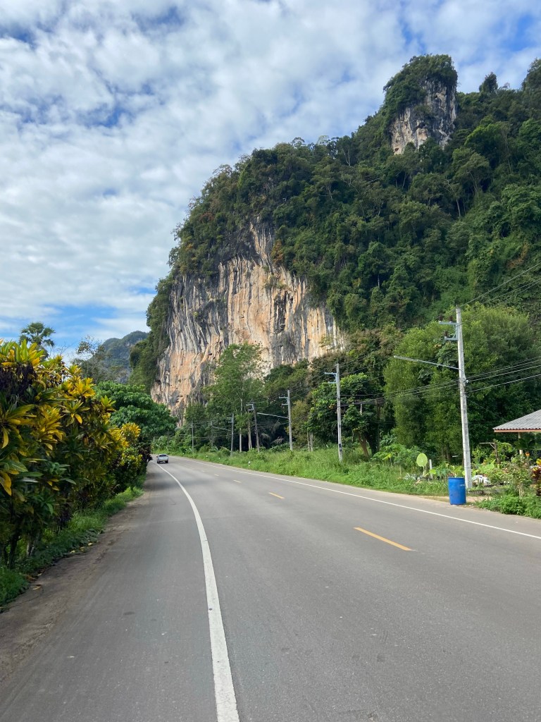 After 3 days of riding I was finally coming into Krabi. The road going into Krabi is this pleasant downhill past these huge rock faces, one of them even had a temple way at the top. Too high up for a good picture sadly.
