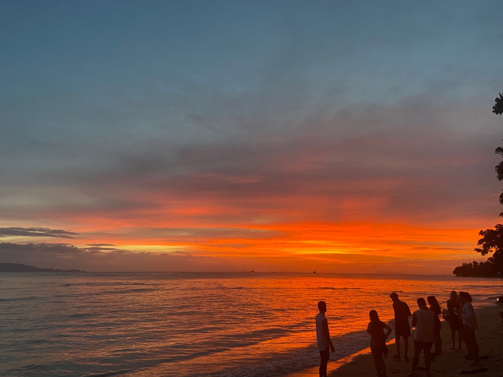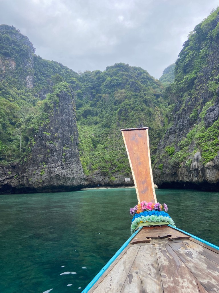 Koh Phi Phi is a tiny island on the west part of southern Thailand. In the photo above you can see the whole town, the part at sea level. On the cliffs on the opposite side of town there is nothing and on the cliffs I was up on there are only trails. The water is so clear and there’s tropical fish and coral reefs to snorkel in all around the island. It’s so pretty. And traveling in Covid means way less tourists, so instead of insanely crowded beaches like it would normally be on Phi Phi there were maybe 10 people max at the beaches.