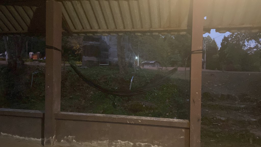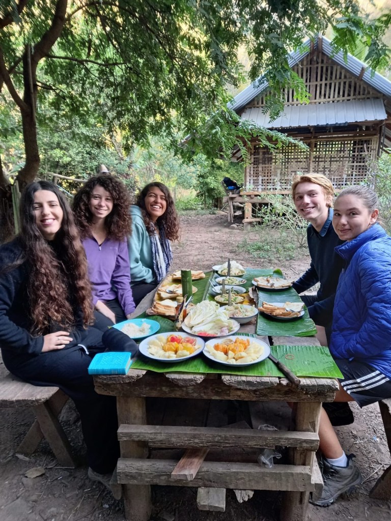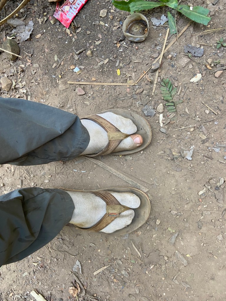 We slept at Chan’s (the female guide) brothers house which was in a mountain valley in the jungle next to a dried up river bed. We slept on yoga mats in his open air hut.