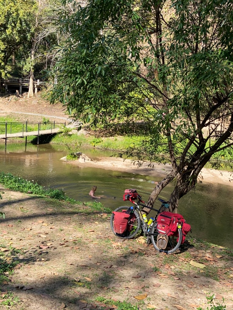 Soooo… I had to continue biking up the mountain for about 20 minutes until I reached the place they said I could camp. And my clean river body was gross again. Luckily that camp spot was on the same river so it was an excuse for me to go back in.
