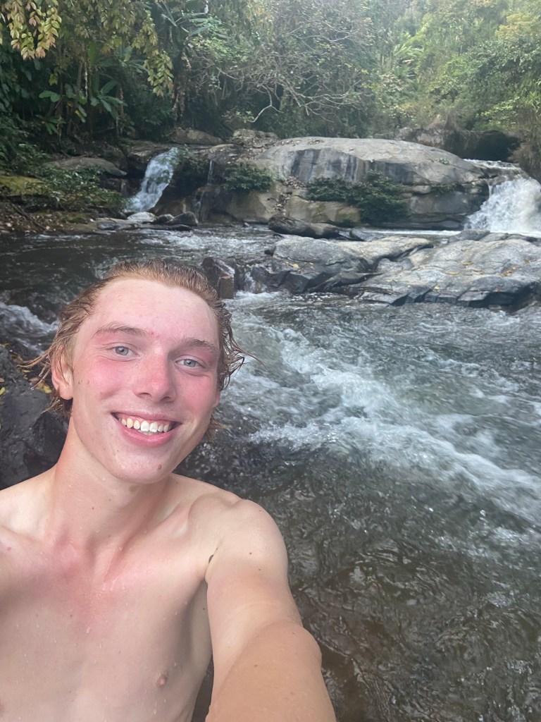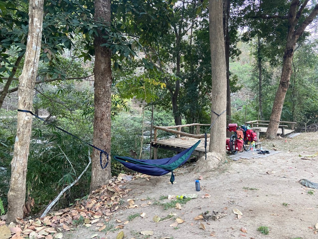 The next morning I set off for the next stop Doi Inthanon NP. I decided I’d head for the base today and then go for the peak the next morning. I arrived at Doi Inthanon around 5 PM and immediately as I entered the gates I started on the crazy ascents. I made camp at a waterfall for the first night and immediately went down to the river to clean the sweat of climbing in the tropical sun off my body.